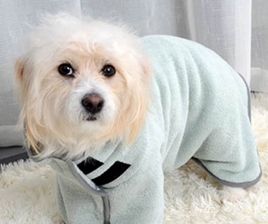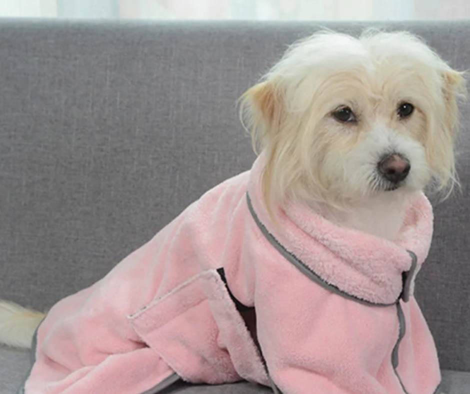 "Viele Hunde zittern nach dem Baden oder neigen dazu, sich an Möbeln und Teppichen trocken zu reiben. Ein Hundebademantel nimmt Feuchtigkeit schnell auf, hält den Hund warm und schont gleichzeitig das Zuhause. Eine einfache Lösung mit großem Nutzen."